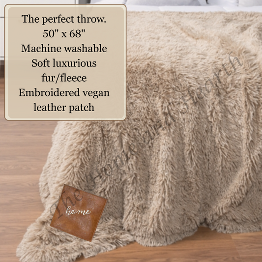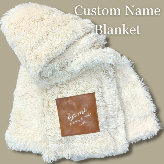 Custom Name Blanket with Leather Patch – Personalized Faux Fur Sherpa Throw