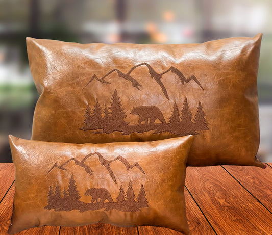 Texas Longhorn leather pillow for gifting, western ranches and cabins